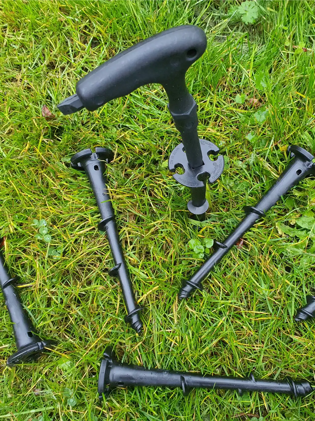 Manufactured in New Zealand, since 2003, from Acetal (poloxymethylene or POM) which is a high strength, low friction engineering plastic having excellent properties for wet and dry environments. Flexible and strong with excellent diversional stability. The pointed tip of the peg helps to pull the peg in as you screw it in and out with little earth disturbance.